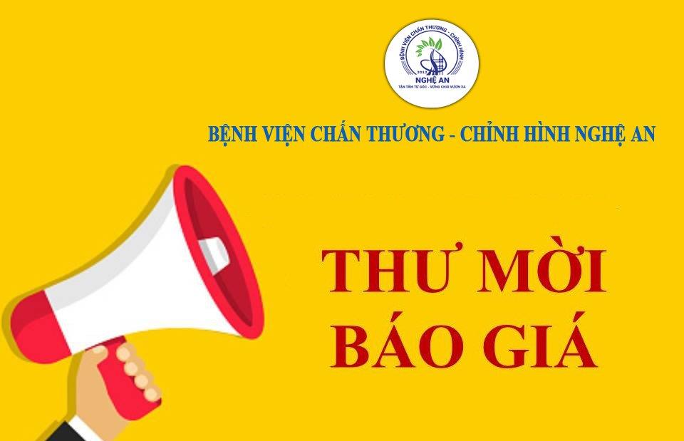 Thư mời báo giá dịch vụ thẩm định giá các danh mục thuộc gói thầu: mua sắm linh kiện, phụ kiện, vật tư thay thế sử dụng cho thiết bị y tế phục vụ công tác chuyên môn tại Bệnh viện Chấn thương - Chỉnh hình Nghệ An